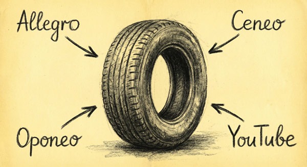 Chcąc kupić np. opony zimowe, otwieram Allegro, Ceneo, Oponeo. Porównuję parametry, a potem ceny wybranej opony. Wchodzę na YouTube, by obejrzeć test opon zimowych. Pytam Chata GPT o to, które będą lepsze na śnieg, a które na błoto pośniegowe. Dostaję kolejne propozycje, więc te kolejne znów sprawdzam w sklepach. Ponownie szukam testów.